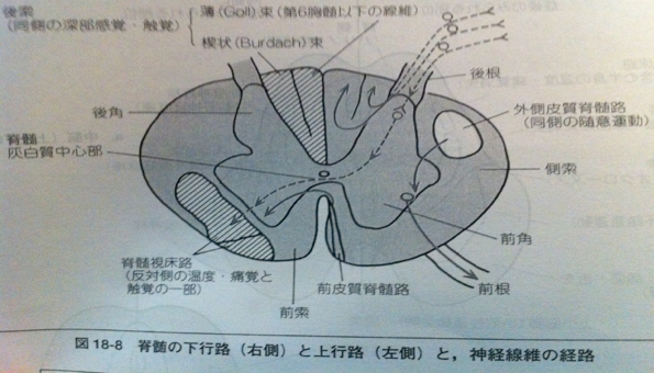 さらに右半身の筋力低下で、顔面を含んでいないので、頚部以下の縦の症状がある。
